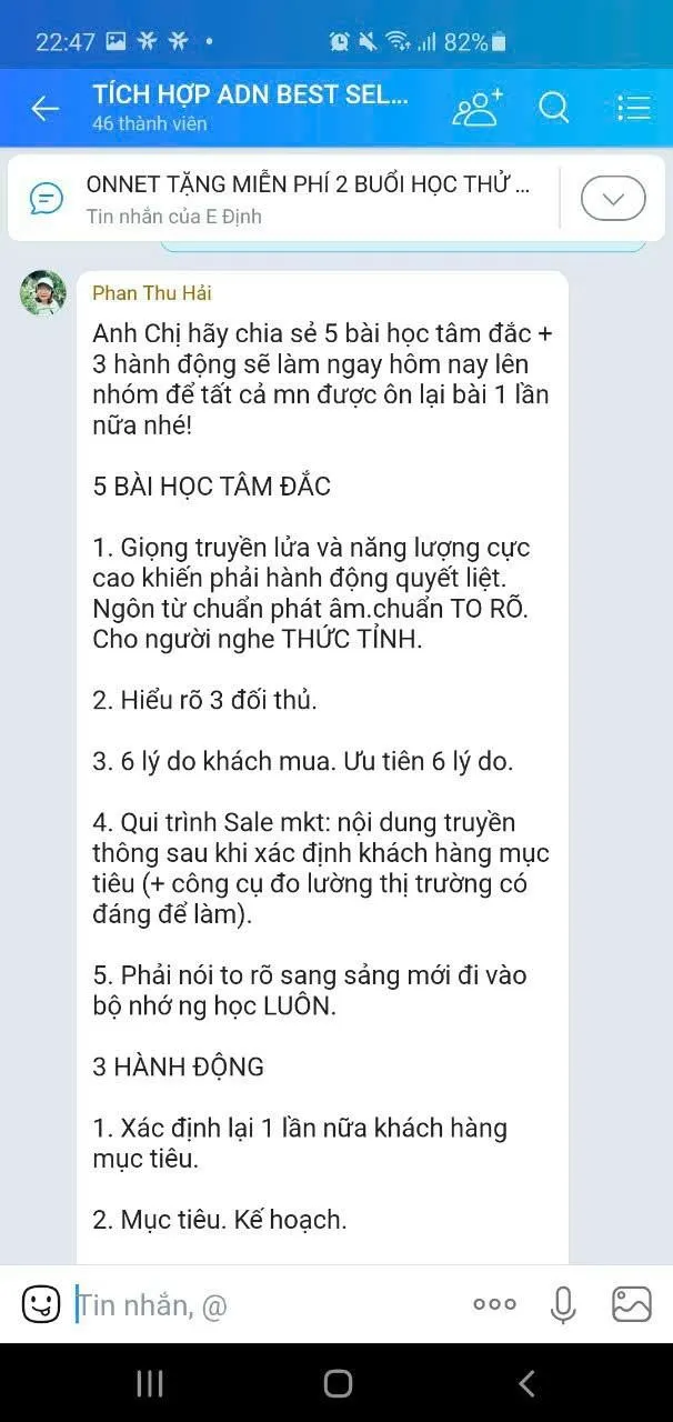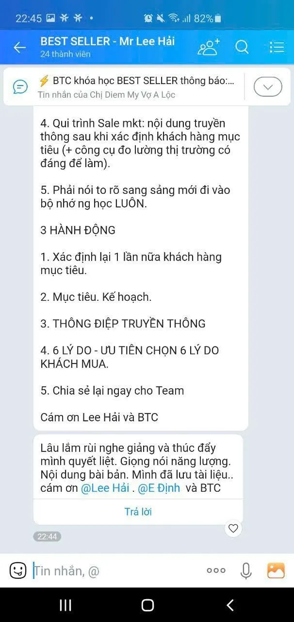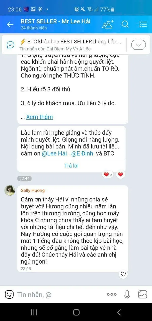 Những học viên đã tham gia khóa học "Trở Thành Best Seller Trong Bất Kỳ Lĩnh Vực Nào" đều nhận thấy sự thay đổi đáng kể trong tư duy và kỹ năng bán hàng của mình. Từ việc tăng doanh số đến phát triển sự tự tin, khóa học đã giúp họ đạt được những thành tựu vượt trội và xây dựng cuộc sống ngoại hạng. Hãy cùng lắng nghe những chia sẻ chân thực và cảm nhận từ họ để hiểu rõ hơn về giá trị mà khóa học mang lại!